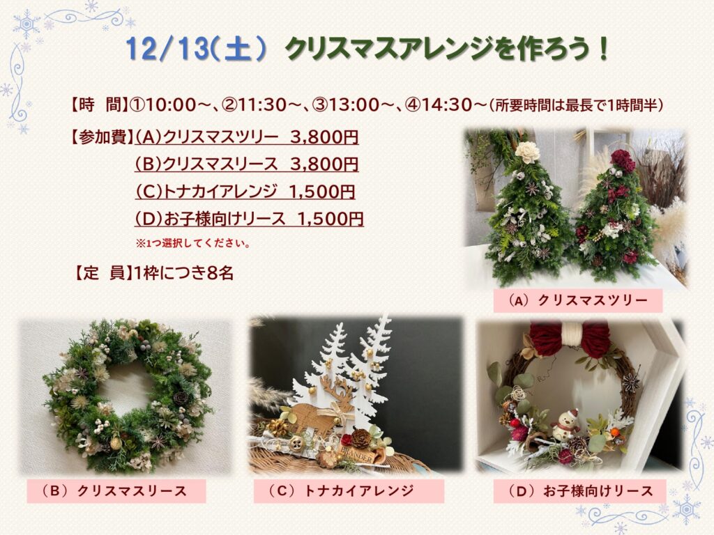 ①12/13(土)10:00~ クリスマスアレンジを作ろう!
