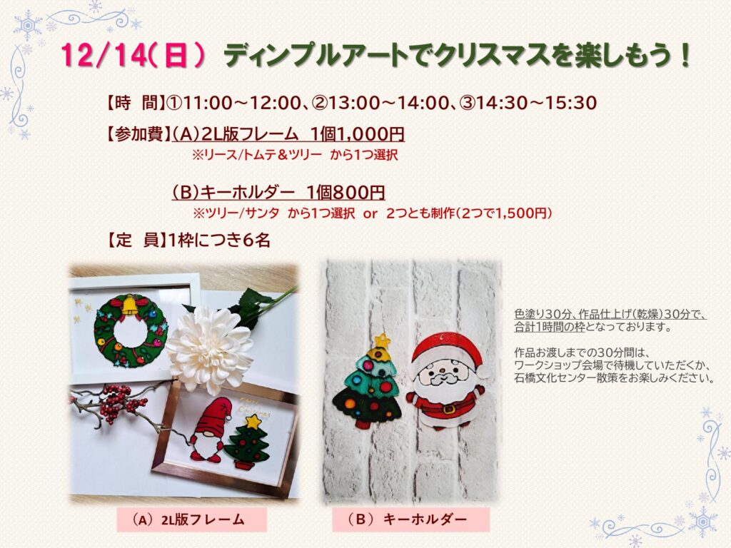 ②12/14(日)13:00~14:00 ディンプルアートでクリスマスを楽しもう!