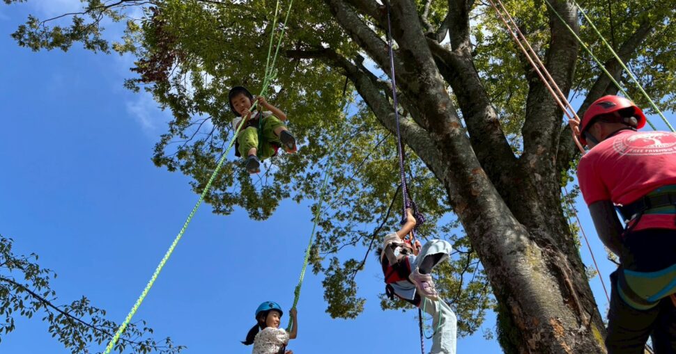 ツリークライミングは専用のロープやサドルを利用して木に登り、自然との一体感を味わう体験活動です。