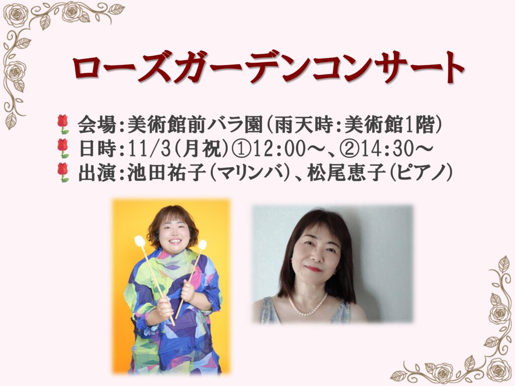 秋色に染まる園内で、マリンバとピアノのコンサートを開催します♪(鑑賞無料)(1日2回公演、各30分程度を予定)