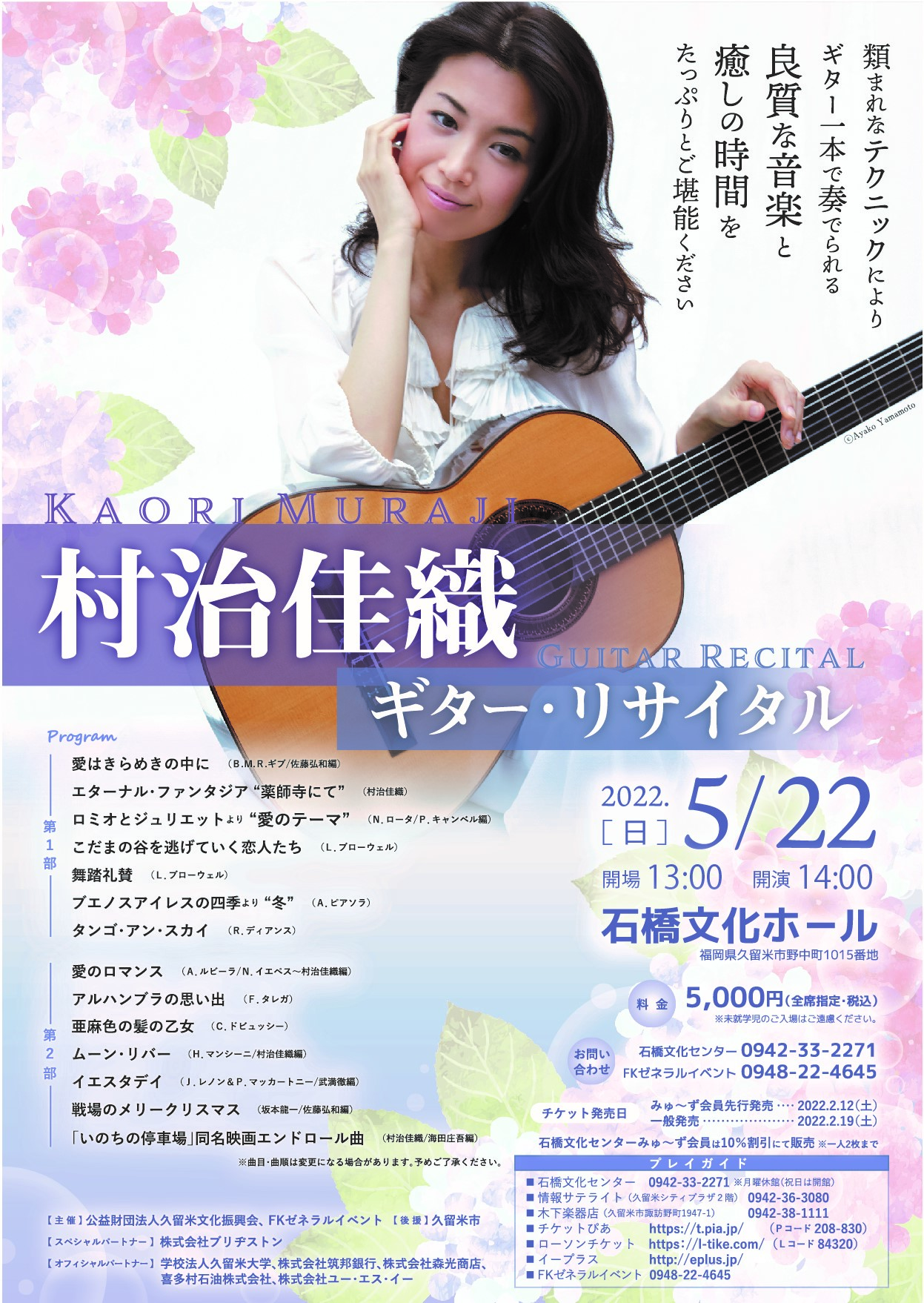 ギター界のミューズ村治佳織が、音楽の殿堂・石橋文化ホールに初登場!