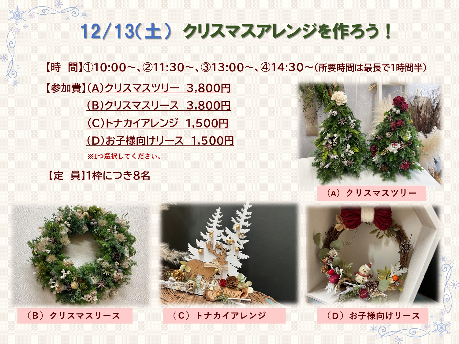 内 容:12/13(土)クリスマスアレンジを作ろう!