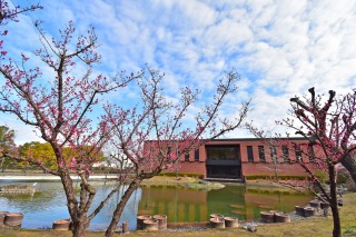 美術館南側(池周辺)の春梅は開花が始まりました。